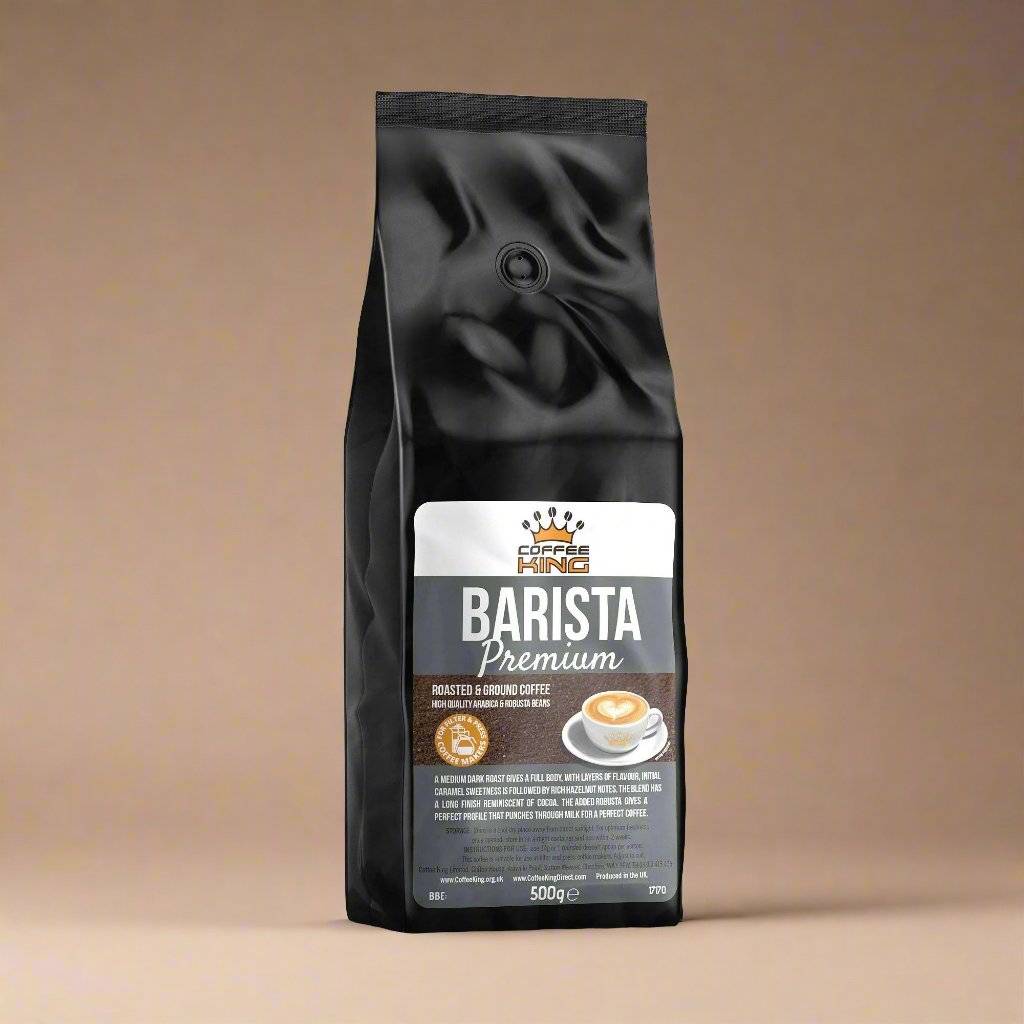 Experience the rich and flavourful indulgence with our Barista Premium Ground Coffee. Crafted from a blend of high-quality Arabica and Robusta beans sourced from Brazil, Latin America, and India, this medium-dark espresso roast delivers a full-bodied taste with layers of exquisite flavours. The initial caramel sweetness transitions into rich hazelnut notes, culminating in a long finish reminiscent of cocoa. The added robusta ensures a perfect espresso profile that also shines through milk, making it ideal for crafting luscious coffee shop cappuccinos.