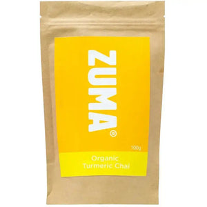 Discover the award-winning and pesticide-free Zuma Turmeric Organic Chai Tea, a soothing herbal blend of turmeric, ginger, vanilla, and orange. This mild, warming chai offers a natural and pure taste experience, free from artificial colours, flavours, additives, and preservatives.